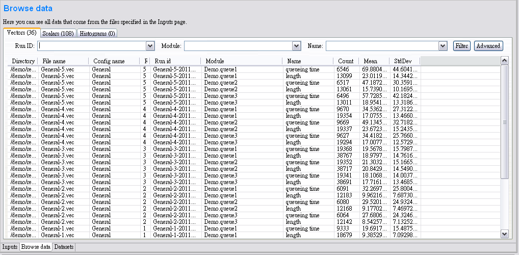 是運行哪個模擬產生的;第二個表(by run and file)顯示了某個模擬運行產生了