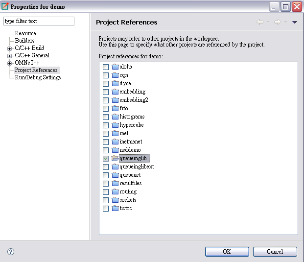 然後右鍵點擊demo -> Properties -> Project References 把queueinglib打勾